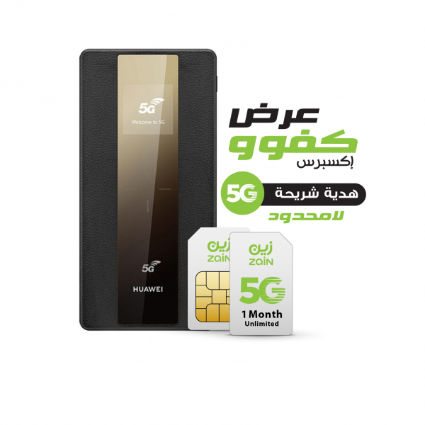 1 Month zain Data SIM unlimited usage + Huawei 5G Mobile WiFi Pro, E6878-370,Black, 16 Users, Balong 5000 5G chipset, peakdownload speed 1.65Gbps, 8000mAH Battery with powerbank ,support wireless charger, Super Charging Powerbank for All Devices, Quick Data Exchange between IoS/Android/PC